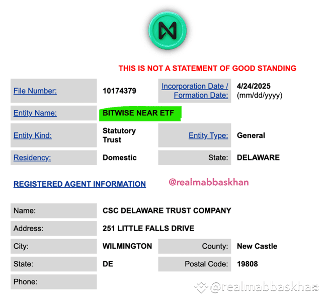 Bitwise just officially filed for the NEAR ETF — and no, this ain’t some rumor. Real filing, real date (April 24, 2025). Delaware. It’s happening. First DOGE, Then APT… Now NEAR! Bitwise Coming for the Whole Market 🔥