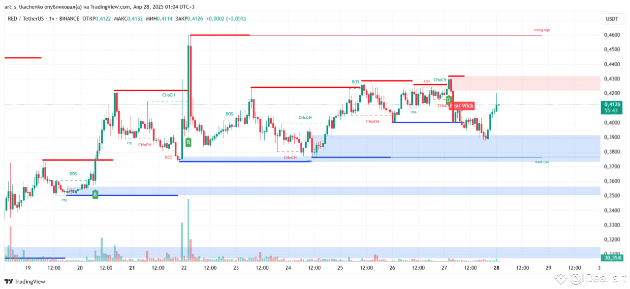 - 24ч: 4.35M RED / 1.76M USDT – низкая ликвидность.
