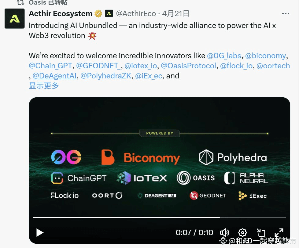 Oasis 是其中的一员,与其他伙伴携手为 AI 开发者提供全方位支持,助力构建AI x Web3的未来!