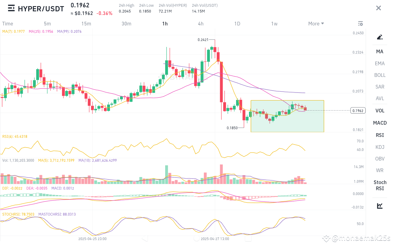 HYPER/USDT (1h) চার্টের MA, RSI, VOL, MACD, StochRSI মিলিয়ে এনালাইসিস: