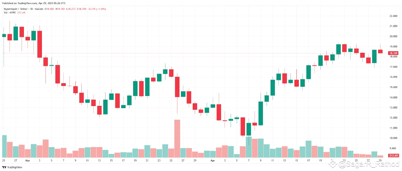 Hyperliquid ($HYPER ) is showing strong signs of strength even after a minor dip. The HYPE is currently trading at $18.37, holding above crucial moving averages like the 100-day EMA. After breaking past a descending trendline resistance, the token suggests a potential longer-term trend reversal. Although it faced some rejection below $20.00, support from the 50-day EMA at $16.62 is keeping bullish hopes alive. With the RSI standing neutral at 60.25, the Hyperliquid price still has enough room to move higher. A breakout above $20.00 could attract more buyers and push the price toward the $24.00 zone.