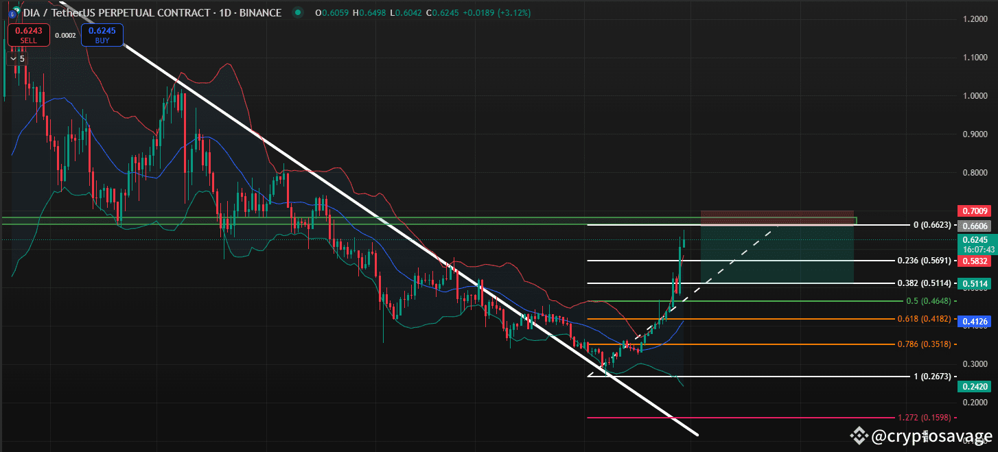 The 12-hour CoinGlass Binance liquidation heatmap reveals substantial upside liquidity on DIA. From a technical perspective, I anticipate a short-term liquidity grab to the upside before a potential reversal to the downside.