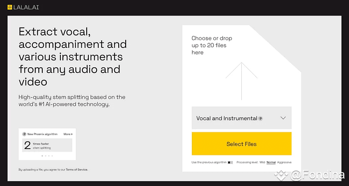 Lalal использует искусственный интеллект для удаления вокала и проводит разделение источников музыки быстро, легко и точно. Вы можете удалить вокальные, инструментальные, ударные, басовые, фортепиано, электрогитару, акустическую гитару и синтезаторные треки без потери качества. Делает творчество безболезненным!