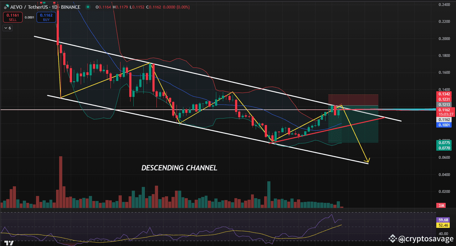 On the daily timeframe, AEVO is forming a descending channel. A breakout above the channel’s upper trendline could signal a potential bullish reversal. However, at the moment, AEVO is showing low volume and has recently been rejected from the upper boundary of the channel. This lack of momentum, combined with the rejection, supports a bearish outlook for now.