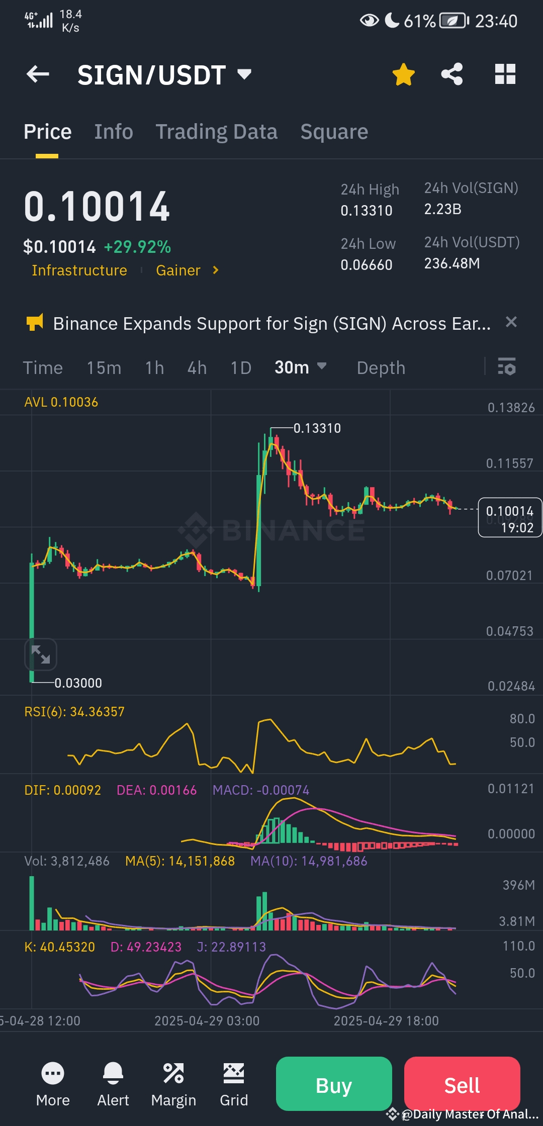✅ صعود قوي! ارتفع SIGN بنسبة +29.92% ليصل إلى $0.10014، مما يشير إلى زخم شرائي قوي واهتمام كبير من المتداولين.