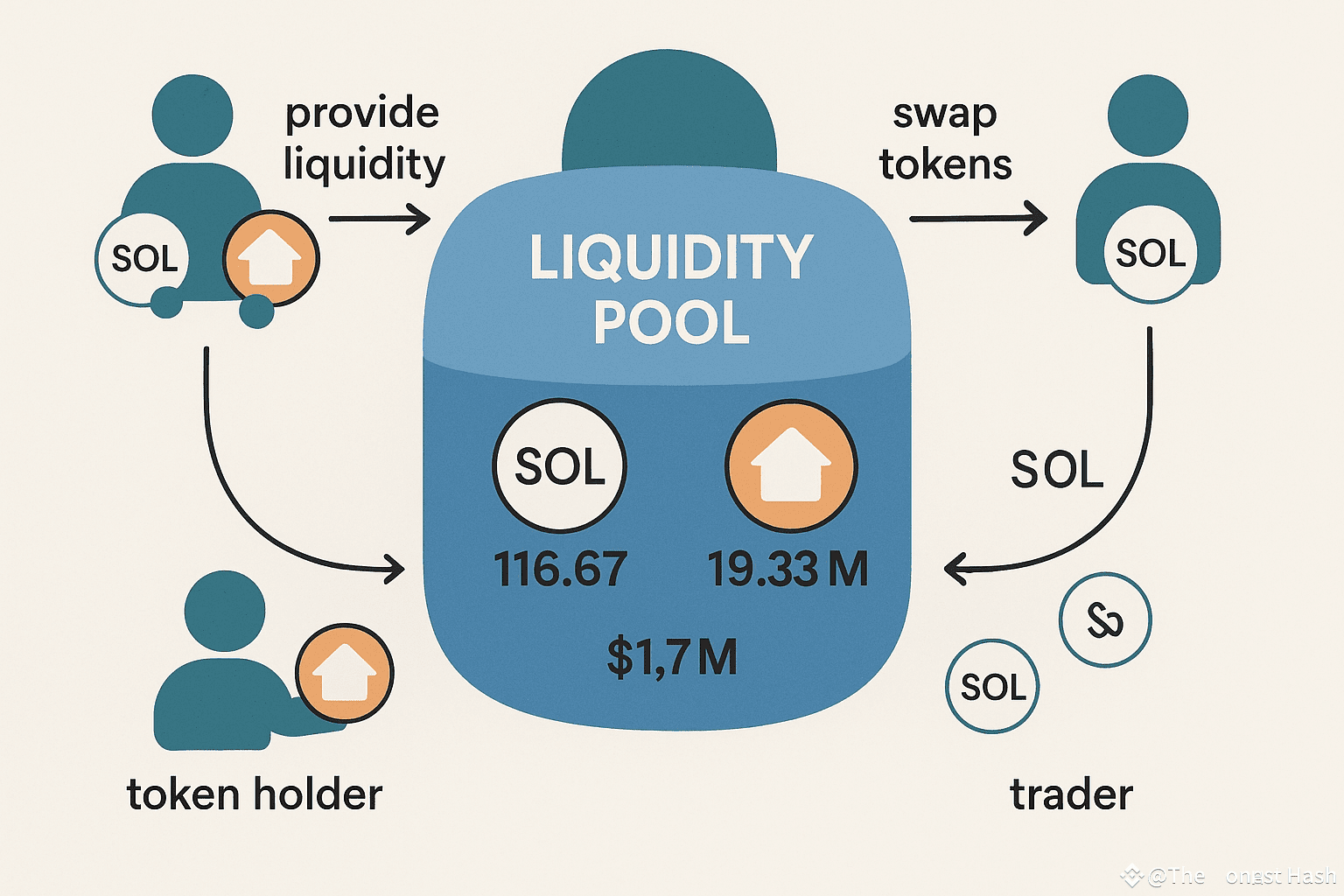 A liquidity pool is a smart contract that holds two types of tokens — in this case, House and SOL (Solana) — enabling users to trade them directly on decentralized exchanges (DEXs). Instead of relying on centralized order books, liquidity pools allow instant, trustless swaps based on token reserves.