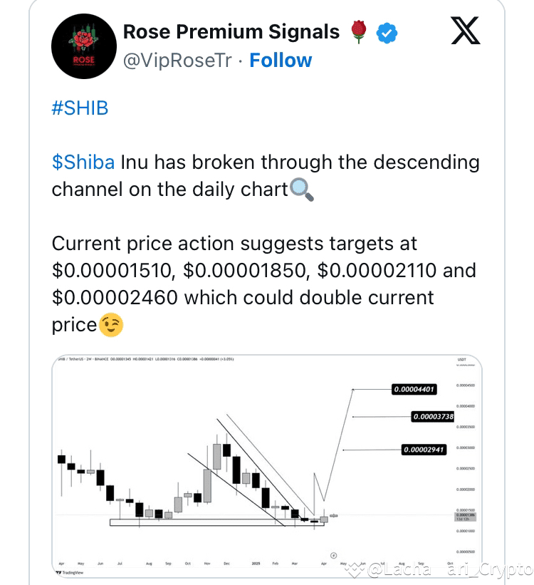 At the same time, further optimism emerged from another analyst known as Rose Premium Signals on X. This analyst observed that SHIB had broken out of a falling wedge pattern, a typical bullish signal.