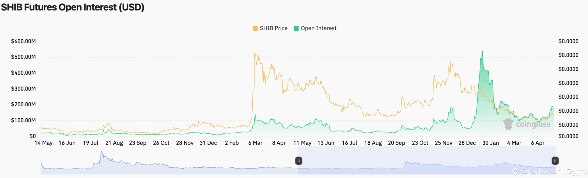In addition to technical analysis, derivatives market data appears to reinforce the observed bullish signals. CoinGlass data shows that SHIB’s Futures Open Interest nearly doubled in April, rising from below $97 million to almost $190 million by April 27.