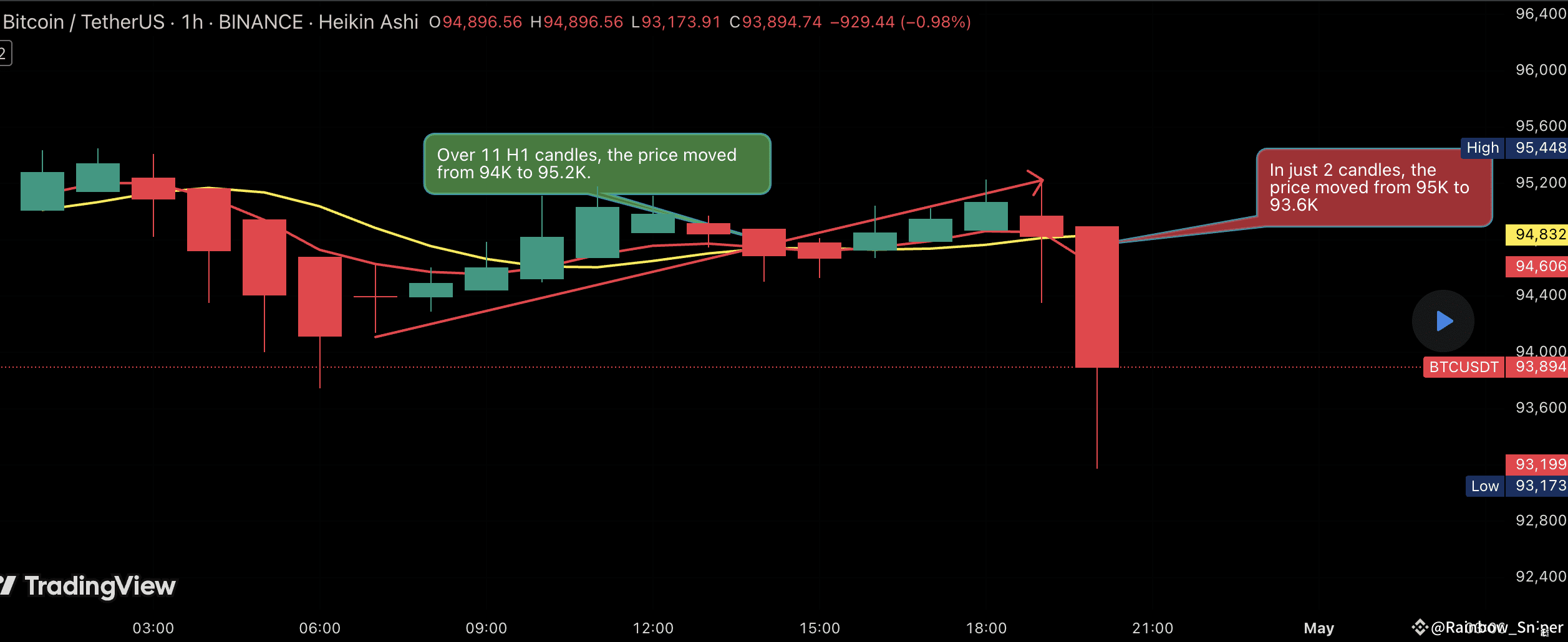 $BTC is currently trading in a narrow range, moving up and down. The D1 uptrend has already played out, from 82K to the 95K zone. Now, we’re waiting for a D1 correction to consider going LONG again. During this D1 downtrend, we can scalp SHORT on H4. However, I’m not choosing to BUY above 95K to chase 97K. Instead, I’ll wait to SHORT or, if no SHORT opportunity arises, wait to LONG again on D1.