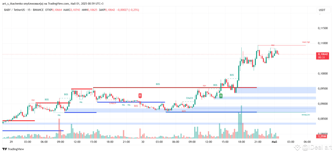 - Вход: $0.1060–0.1065 (отскок с объемом >1M BABY)