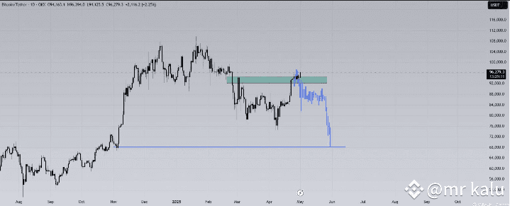 🔵 The blue prediction line suggests that if buying momentum weakens, the price could drop straight to $69K–$70K.