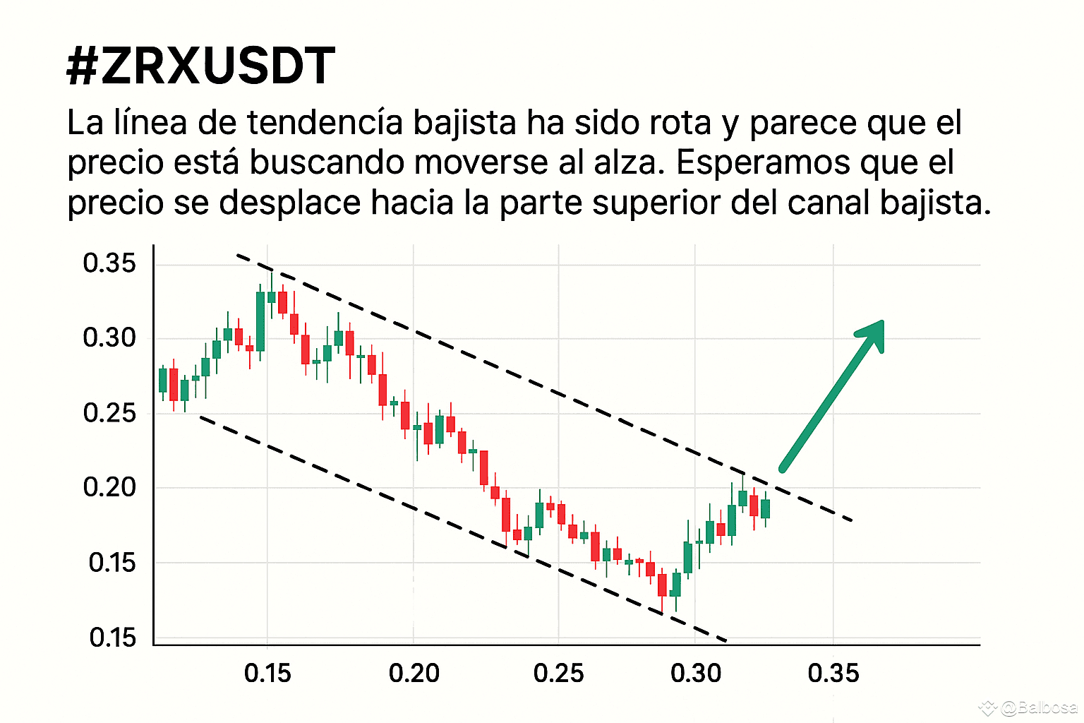 #ZRXUSDT La línea de tendencia bajista ha sido rota y parece que el precio está buscando moverse al alza. Esperamos que el precio se desplace hacia la parte superior del canal bajista.