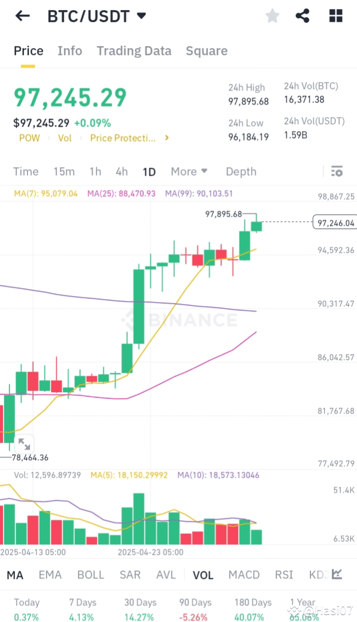 $BTC has already touched $97,400 today — just $600 away from my original target of $98,000. Right now, it's hovering around $97K. I know a lot of people are thinking about shorting here, but I’d say hold off for now.