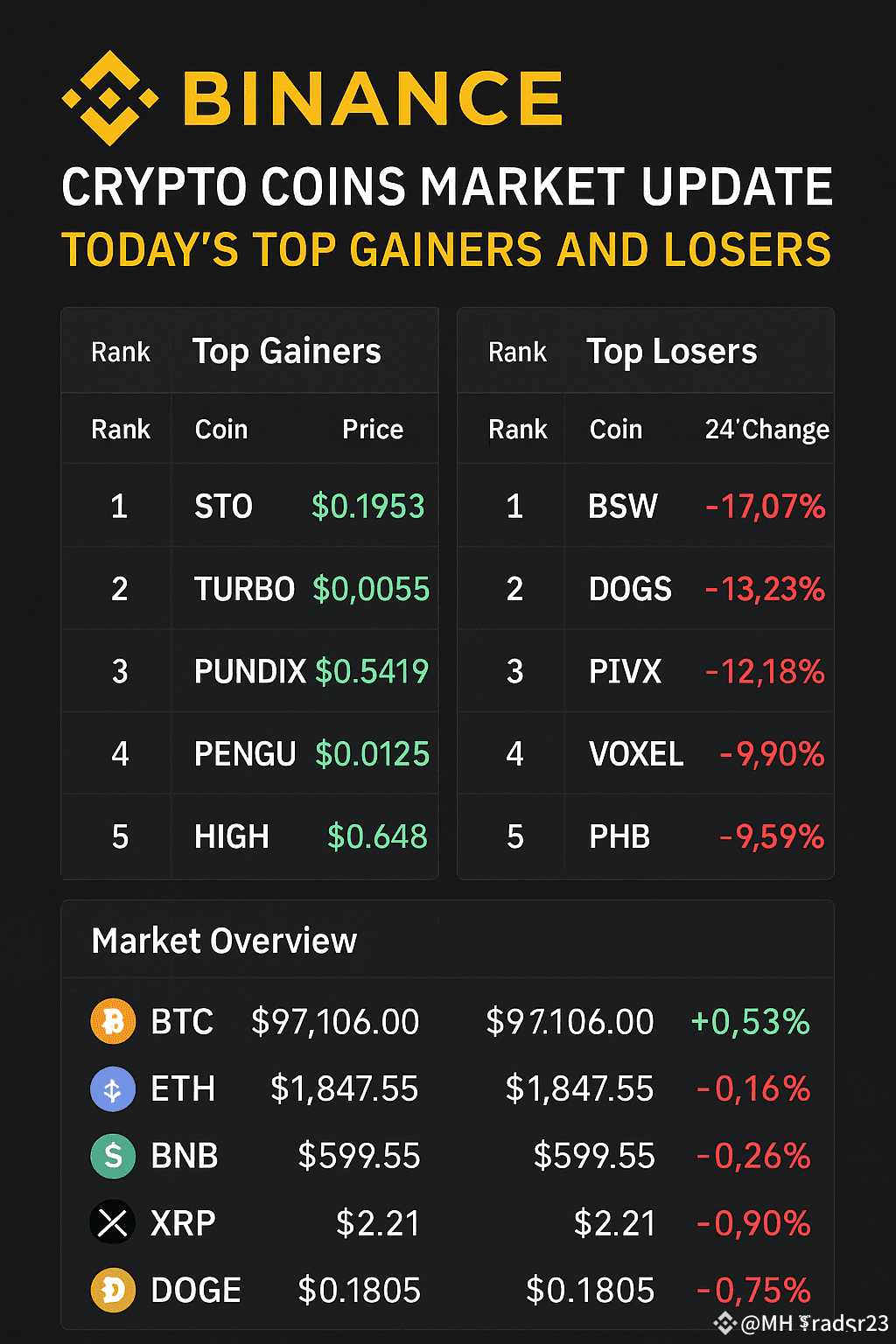 Here's the latest update on the top gainers and losers in the Binance cryptocurrency market: