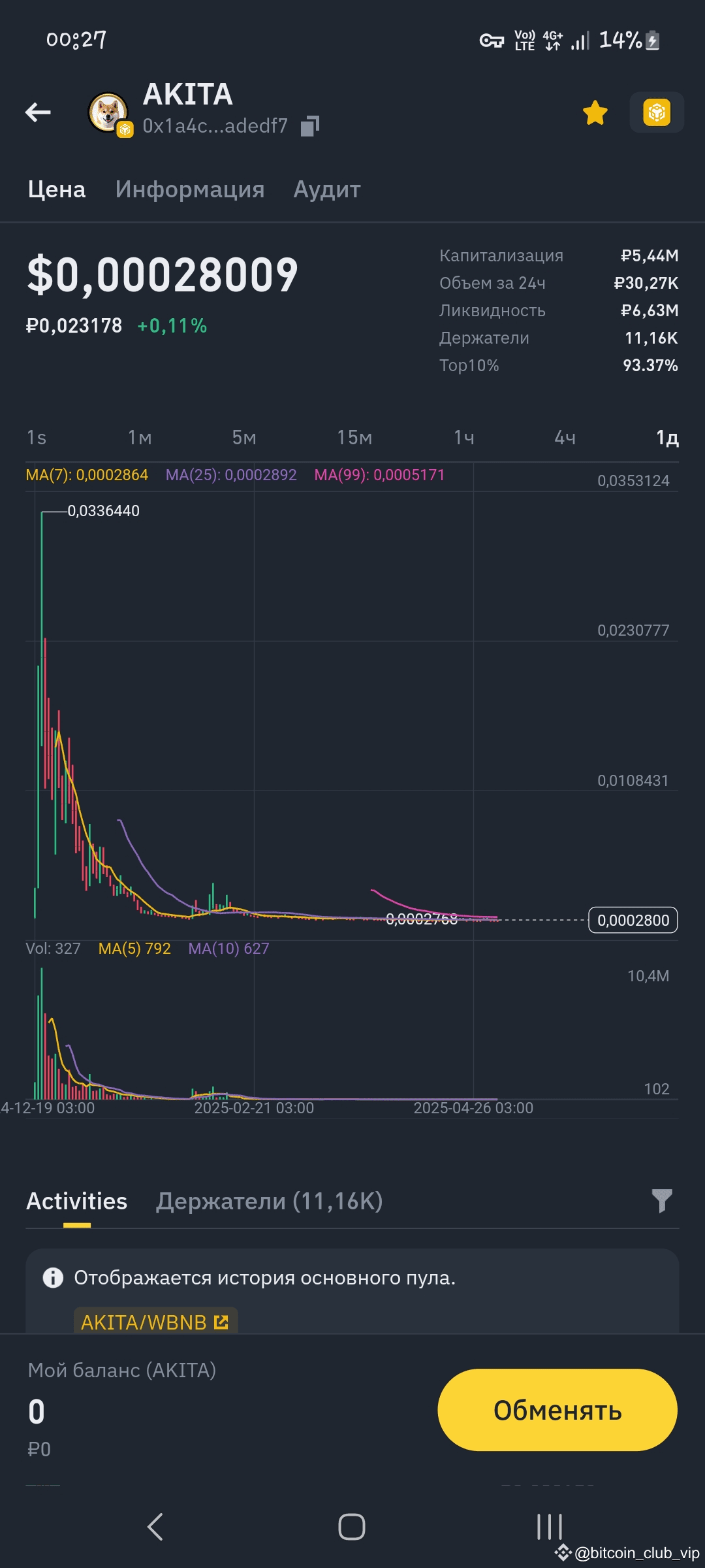 здравствуйте дорогие братья и сестры , я очень ценю ваше время и средства но , скоро этот проект в цепочке собак я считаю догонит shiba inu, так так в нем есть функция сжигания , хороший контракт при сканированиии через ии чат боты.капитализация небольшая что даст рост минимум 100 раз при возврате на пиковые значения. созжено больше половины монет, взгляните на график похоже что дно пройдено! #akitabsc #btc70k