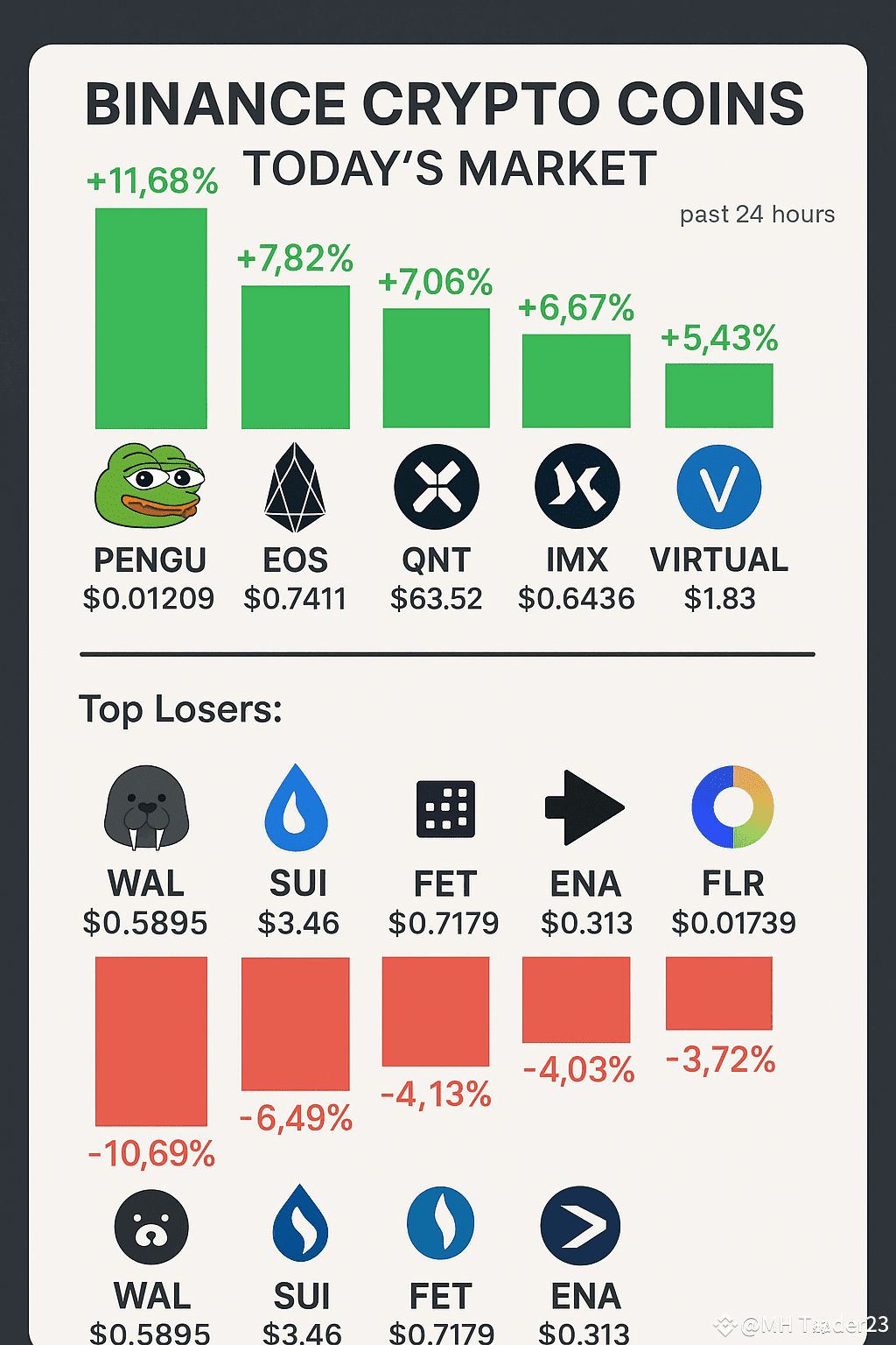 #pengu (PENGU) โ $0.01209 (+11.68%) Pudgy Penguins has seen a strong surge, likely due to increased community engagement and NFT-related developments