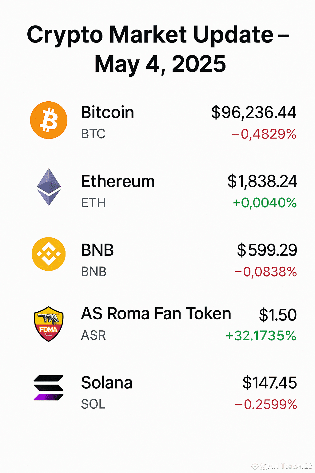 1. #BTC☀ Bitcoin (BTC)Price: $96,236.44Change: -0.4829%Bitcoin experienced a modest dip today, shedding nearly half a percent. After its recent rally past the $96,000 mark, the flagship cryptocurrency appears to be consolidating, with traders closely watching for either a breakout or further pullback.