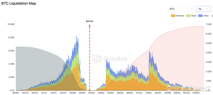 CoinAnk 清算地图数据显示,如果BTC突破97900美元,主流CEX累计空单清算强度将达43.89亿美元。 反之,如果比特币跌破89480美元,主流CEX累计多单清算强度将达46.36亿美元。