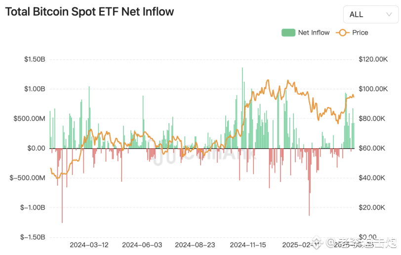 然而,ETF对价格的实际影响存在局限性。尽管ETF持有比特币总量已占流通量的5%以上,但历史数据显示,资金流入并不必然推动价格突破前高。例如,2024年6月ETF连续18天净流入时,比特币价格仍受制于宏观政策及地缘风险。此外,部分资金可能源于套利策略(如现货做多与期货溢价交易),而非纯粹看涨预期。因此,ETF的资金动态需结合宏观经济周期(如美联储利率政策)及市场结构(如长期持有者抛售压力)综合评估。