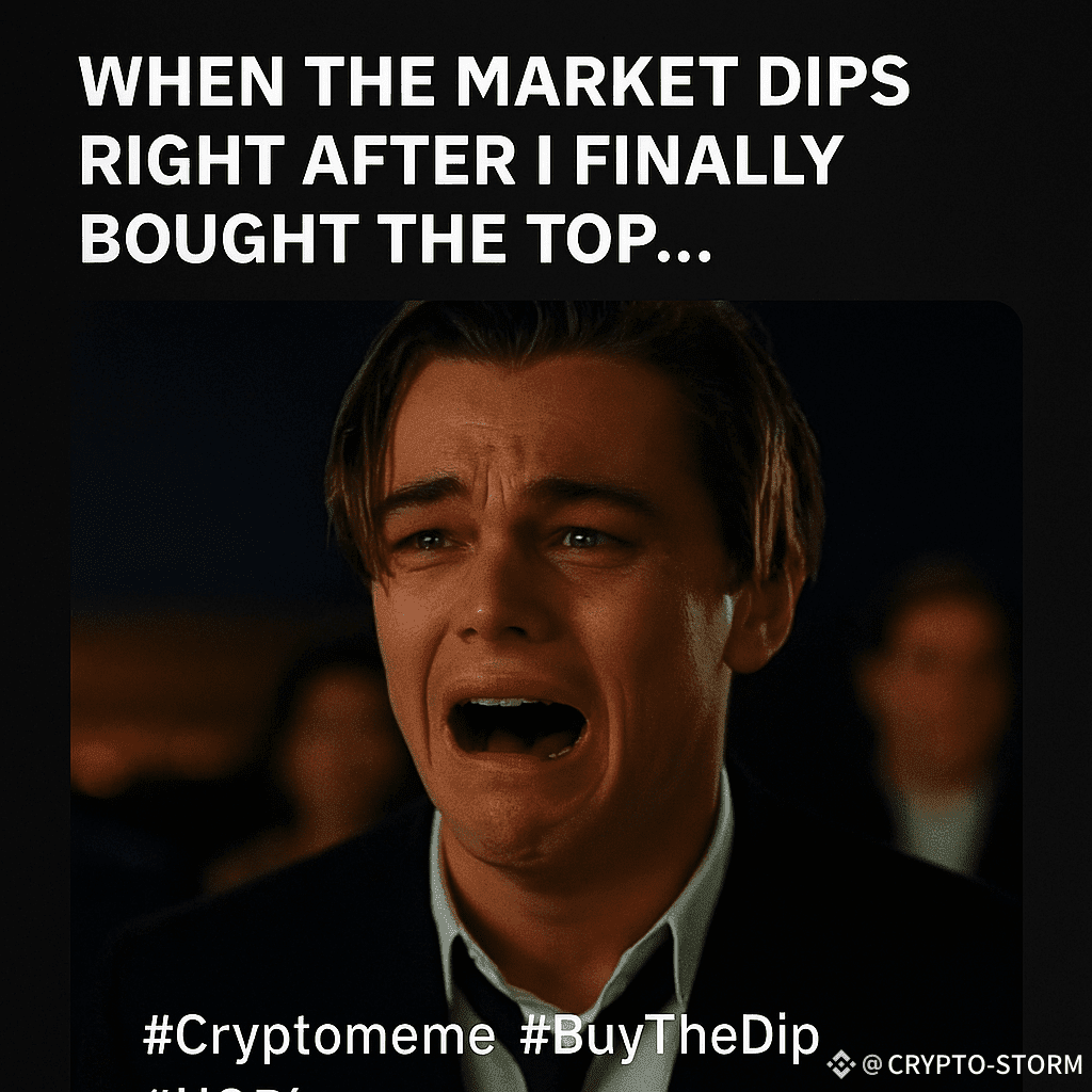 This meme is all about the common pain in crypto—buying when prices are high and watching them crash. The dramatic crying face from Titanic makes the feeling even more powerful and funny.