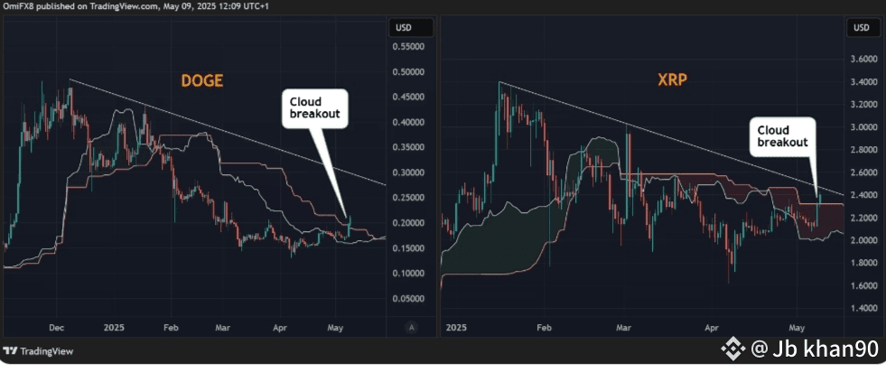 Now, top alternative cryptocurrencies such as memecoin #DOGE payments-focused #XRP ,the #ETH blockchain's ether (ETH) and Solana's SOL have also crossed above the cloud, flashing bullish signals.