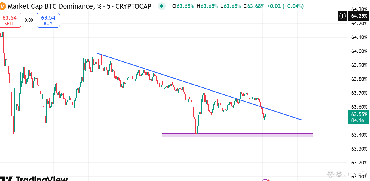 Bitcoin Dominance just fell from ~65% to 63.3%—a seemingly small move, but a strong market signal in crypto terms.