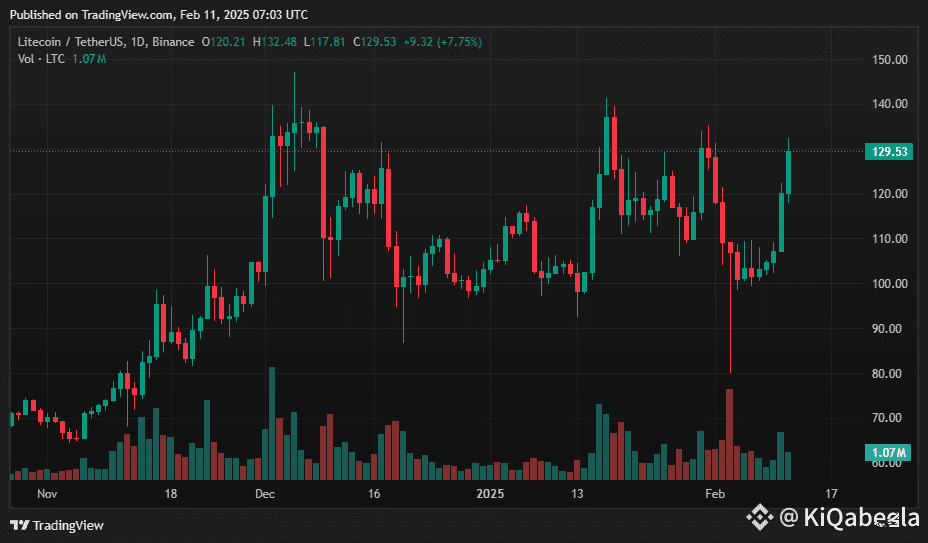 As of Feb. 11, 2025, LTC is trading at approximately $129.49 per token. The cryptocurrency has experienced an intraday high of $131.32 and a low of $113.32. The 24-hour trading volume stands at $1.88 billion, contributing to a market capitalization of around $9.77 billion.