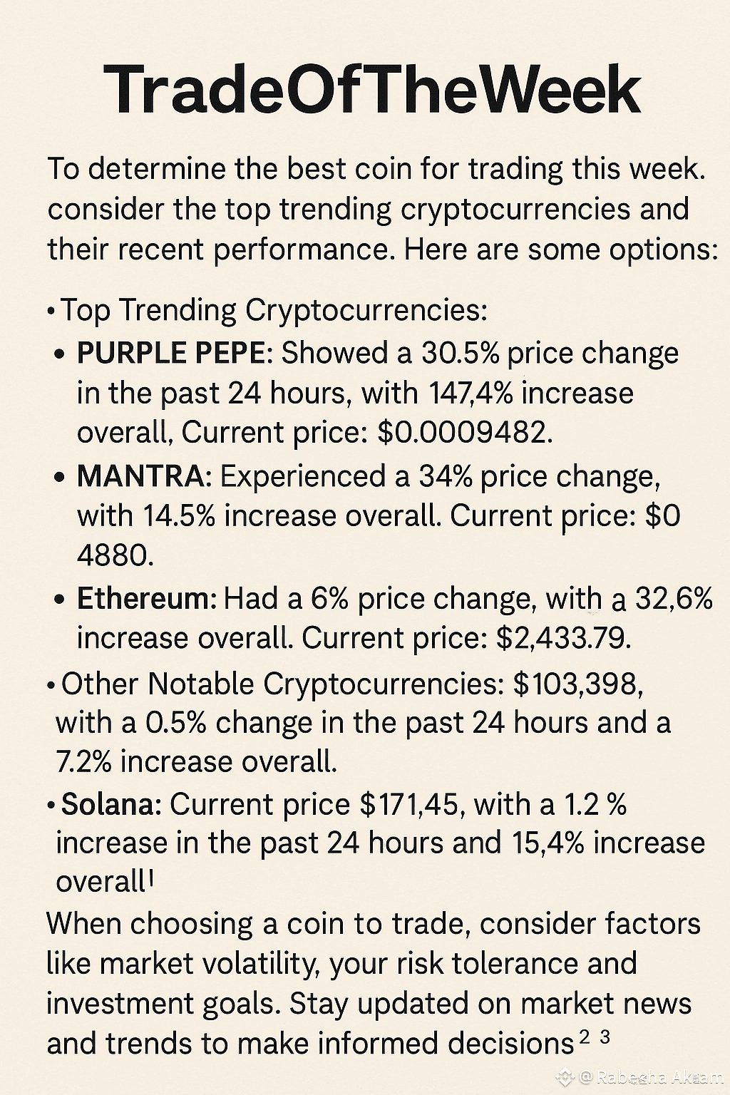 To determine the best coin for trading this week, consider the top trending cryptocurrencies and their recent performance. Here are some options: