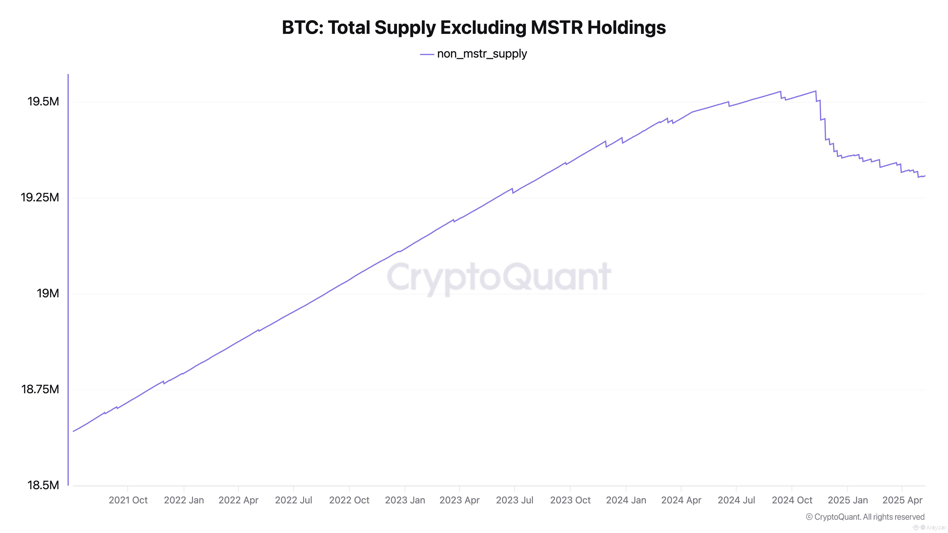 Actualmente Strategy posee 555000 BTC que representan activos iliquidos sin planes de venta Esto ha provocado que Bitcoin con su oferta limitada tenga ahora una tasa de deflacion anual del 223 la cual incluso podria ser mayor si se consideran otras instituciones con estrategias similares