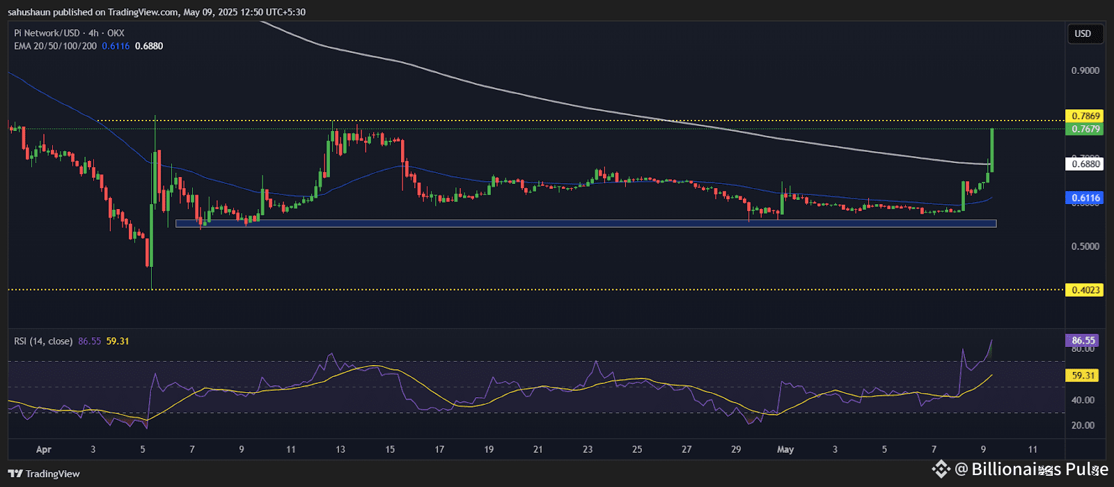 At the time of writing, Pi coin price was trading at $0.7663 with an intraday surge of 22.82%. Its daily trading volume surged by 102.86% which indicates a surge in buying and selling activity. Furthermore, its current circulating supply stands at 7.04 billion Pi, and its market cap stands at $5.41 billion.