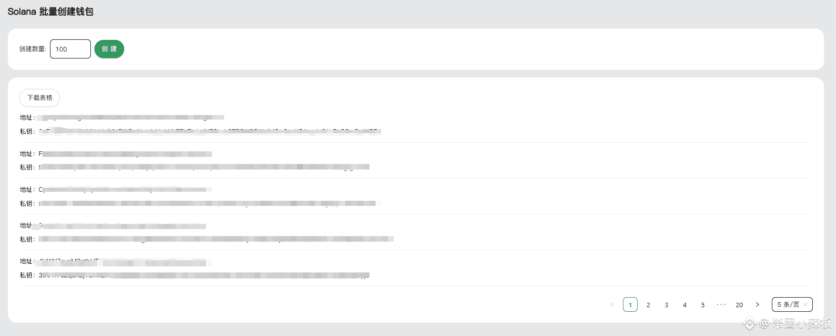CiaoTool 将在前端调用 Solana Web3.js 模块,生成对应数量的 Keypair,所有过程仅在浏览器本地执行,确保私钥不会上传服务器。