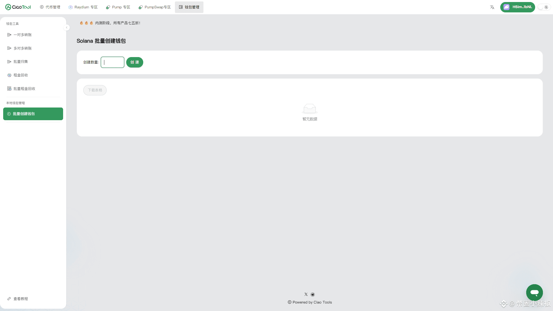 Step 1: 打开 CiaoTool 钱包批量创建页面