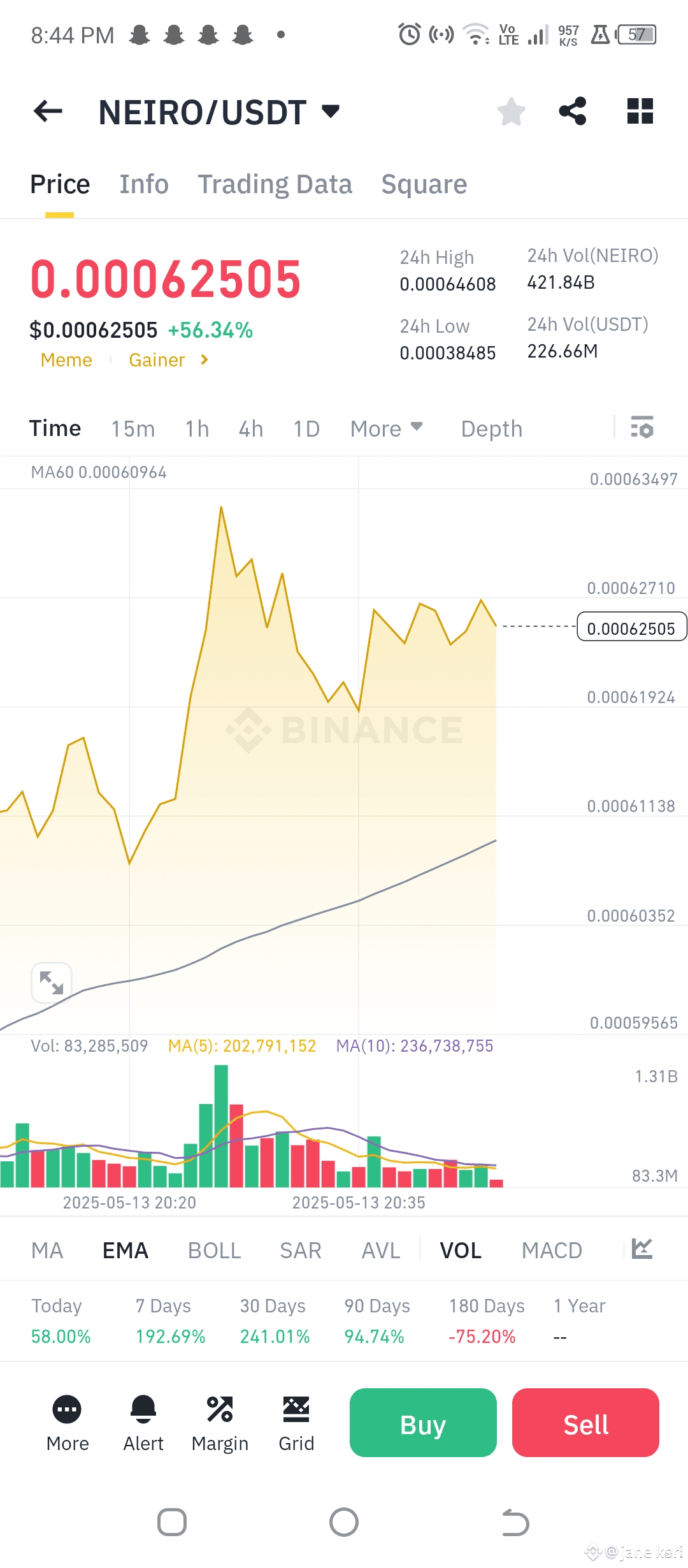 * **Volume (NEIRO)**: `421.84B` | Volume (USDT): `226.66M`