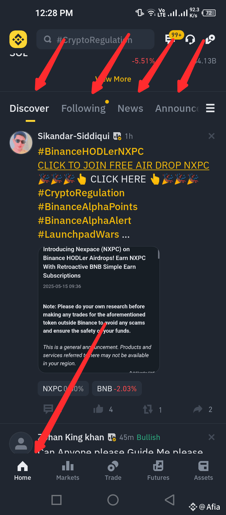 The Announcement, News, Academy, and Live tabs on Binance Square provide users with a centralized location to access and explore various types of content.