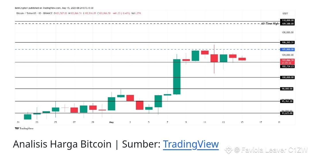 Bitcoin saat ini diperdagangkan dalam kisaran antara US$105.000 dan US$102.734, berada di US$103.066. Aksi harga ini menunjukkan bahwa BTC menunggu potensi pantulan. Namun, mata uang kripto ini tetap terhambat dan tidak dapat menembus level resistance signifikan, menyoroti ketidakpastian yang sedang berlangsung di pasar.