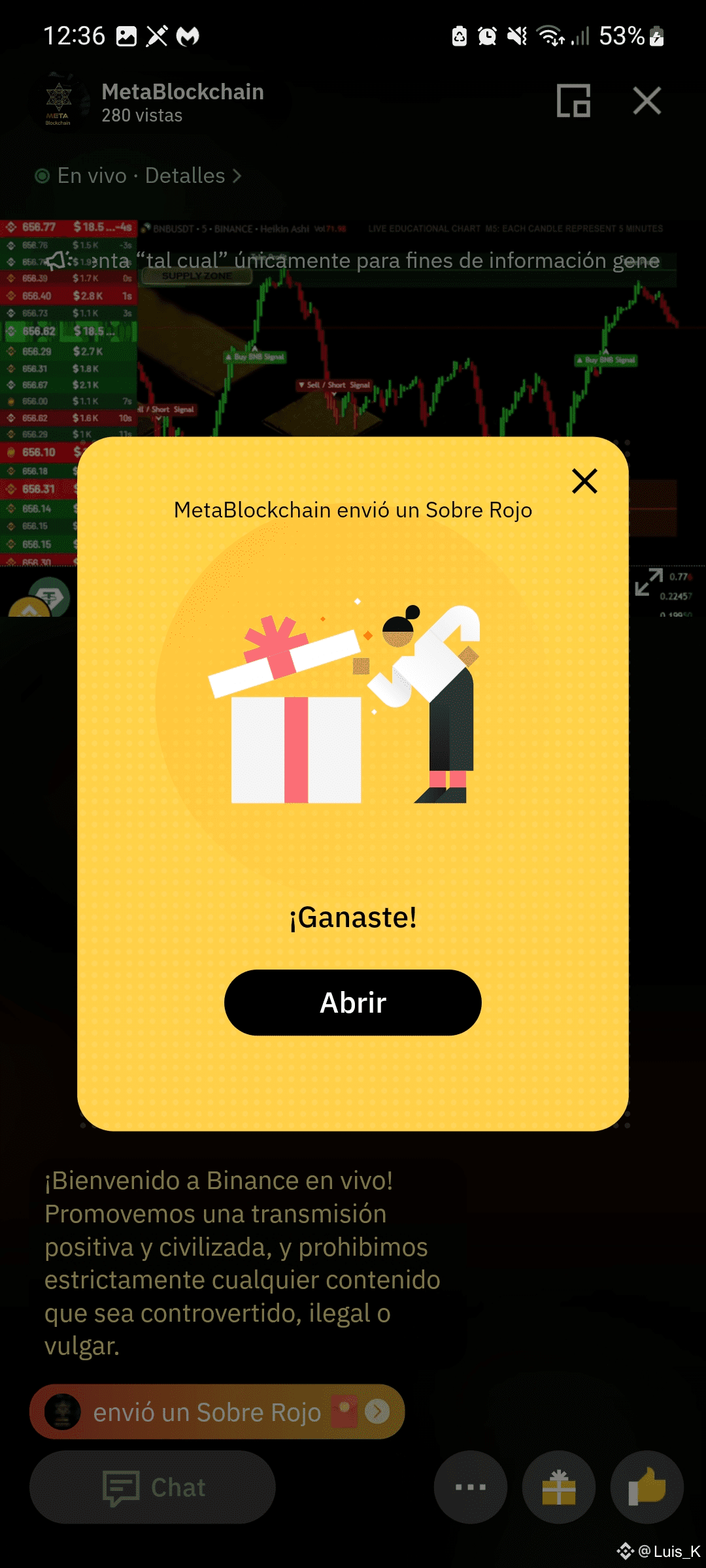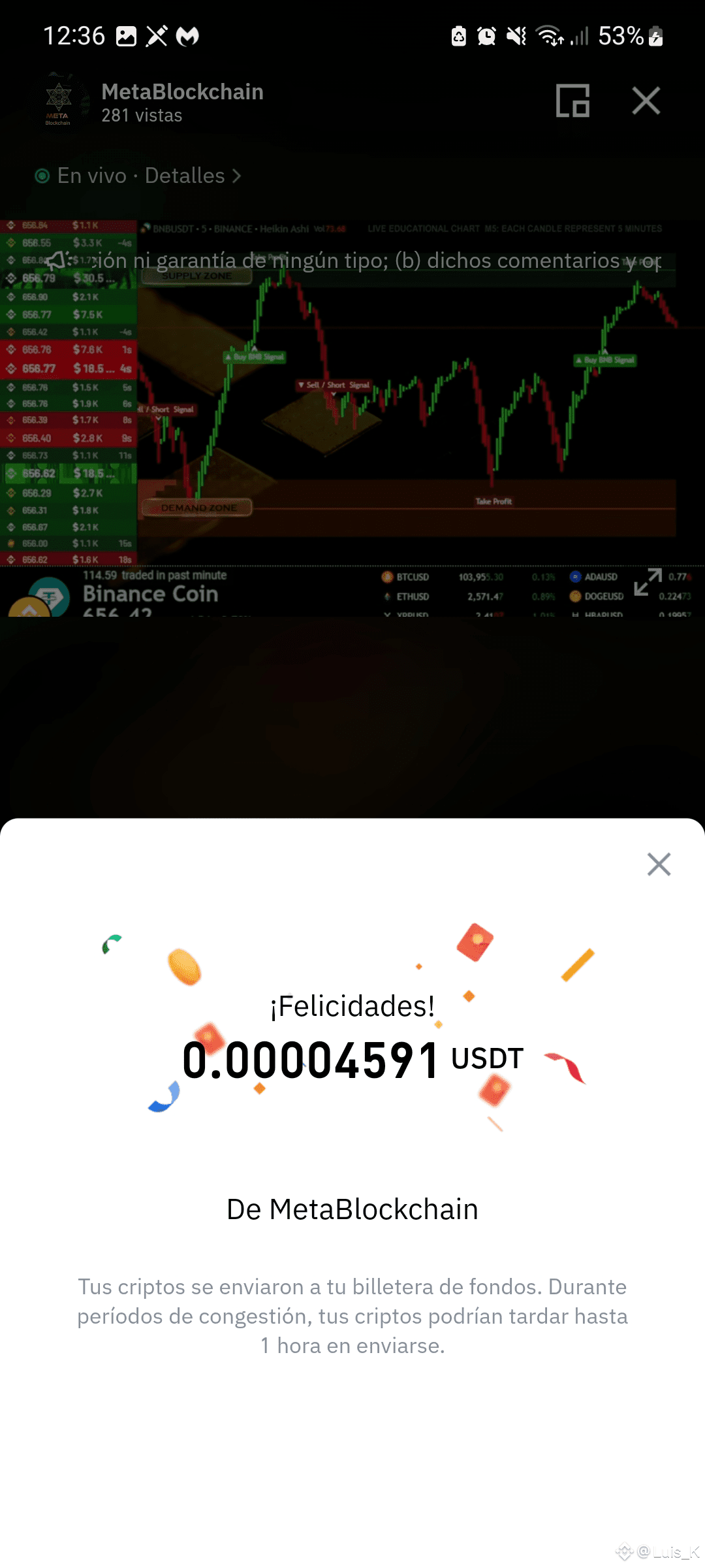 4. Luego recibe tu premio y busca nuevos live para ver !!!