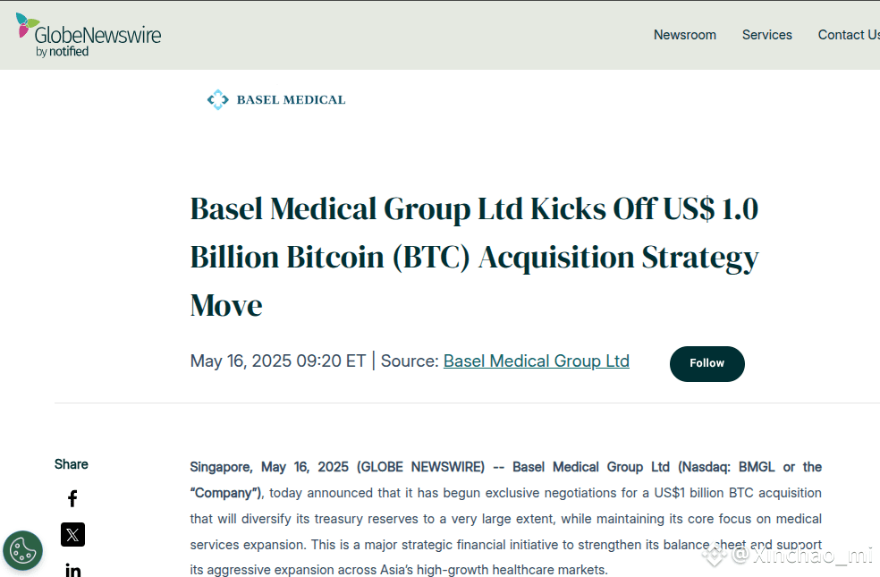 Basel Medical Group Ltd (Nasdaq: BMGL) has entered into exclusive negotiations for a $1 billion acquisition of Bitcoin (BTC), marking a major shift in its financing strategy.