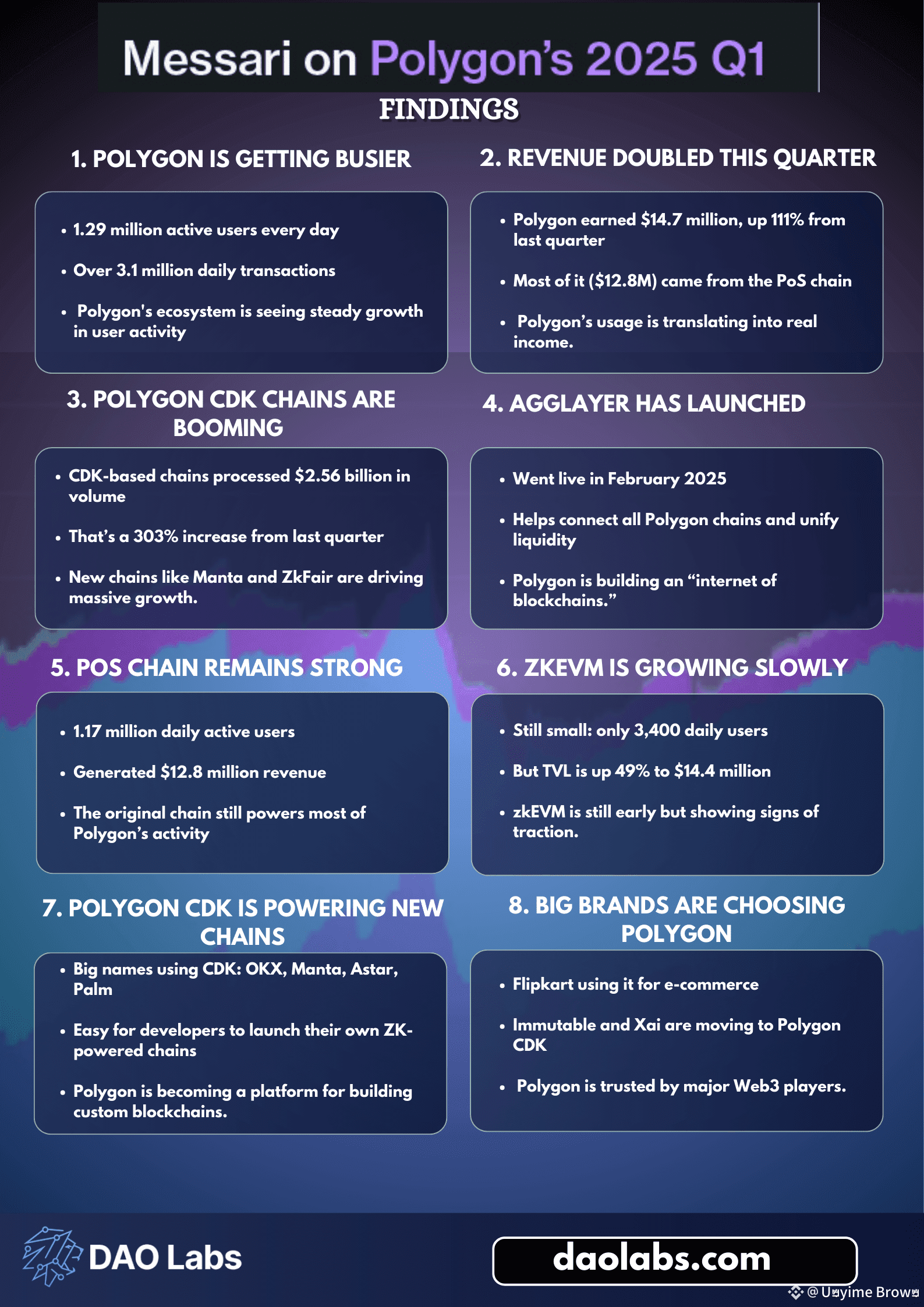 Q1 2025 demonstrated Polygon’s continued leadership in Layer-2 innovation, emphasizing security, scalability, and interoperability.