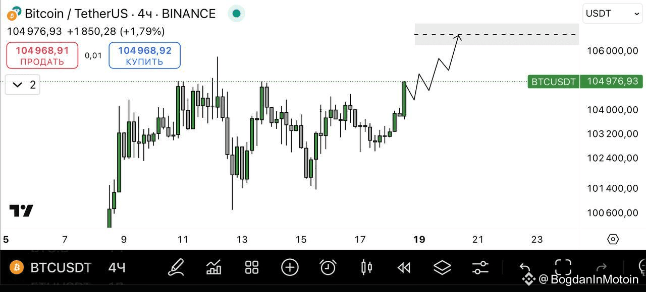 Цена биткоина продолжает двигаться в рамках ранее обозначенного сценария. Лонговая структура сохраняется — приоритет остаётся на рост. В фокусе — область выше $106,000, туда и смотрим.