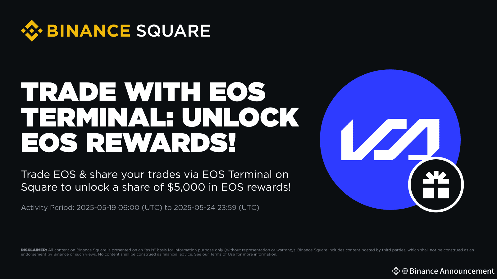 Binance Square is pleased to introduce Trade With EOS Terminal, a Trade Sharing Challenge in partnership with Vaulta, where users who share their EOS trades via EOS Terminal can earn rewards. Eligible participants can get a chance to unlock a share of $5,000 in EOS token voucher rewards!