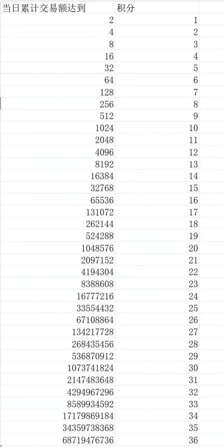 积分怎么构成呢?目前的积分是由你的余额和你的交易量两者相加来得到你今天的积分。