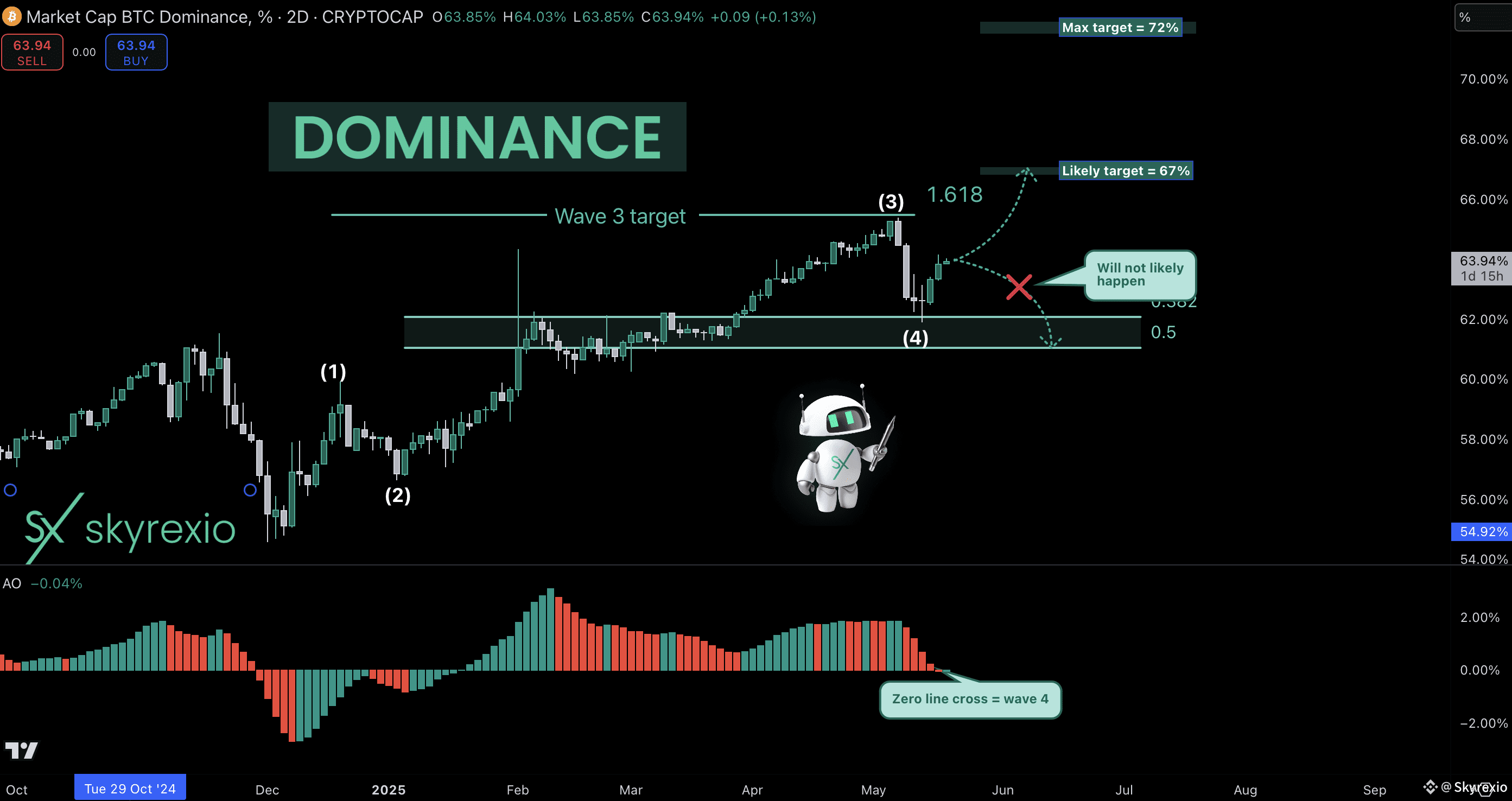 When I shared last update on $BTC dominance I mentioned that not sure that altseason has been started, now I decided to go back to my first scenario where dominance shall reach 67%.