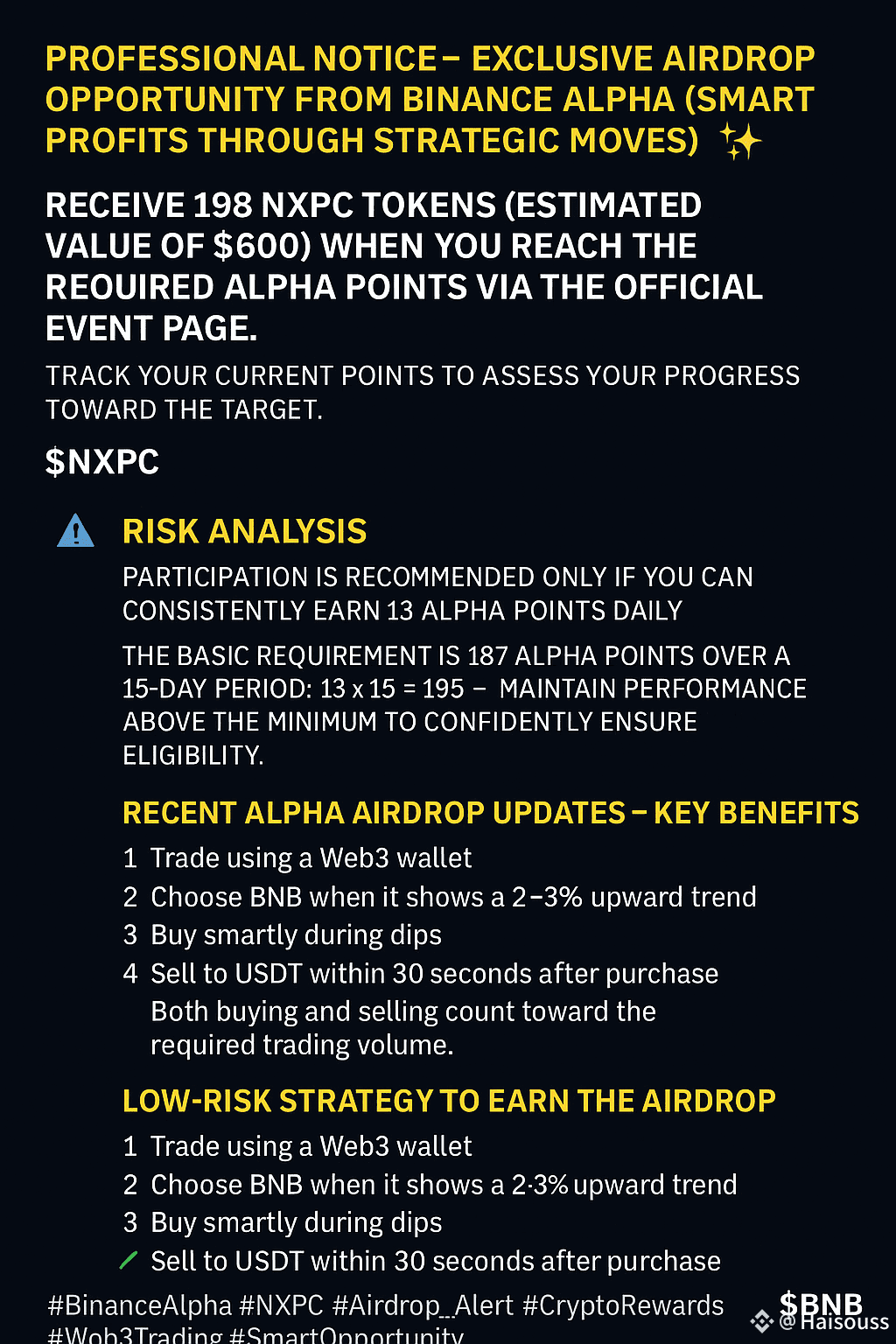 #BinanceAlphaAlert #NXPC #AirdropAlert #Web3Trading #SmartLiving