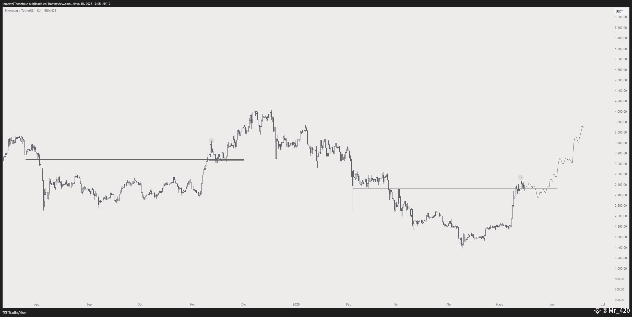Looking closer at ETH, Inmortal predicts that Ethereum will continue to consolidate at current levels before sparking surges to $3,800 next month.