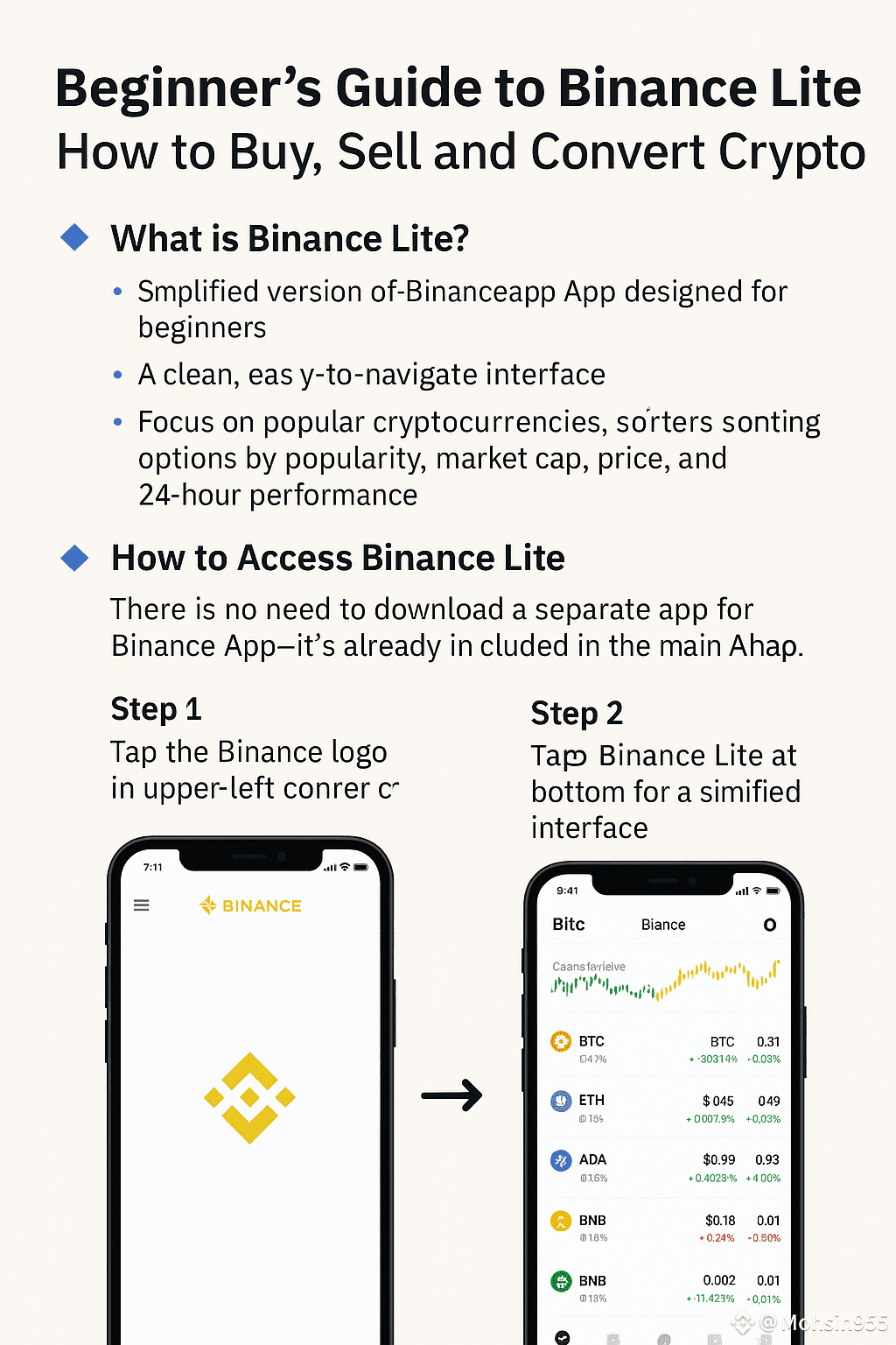 Binance Lite is a simplified version of the Binance App designed for beginners. It offers: