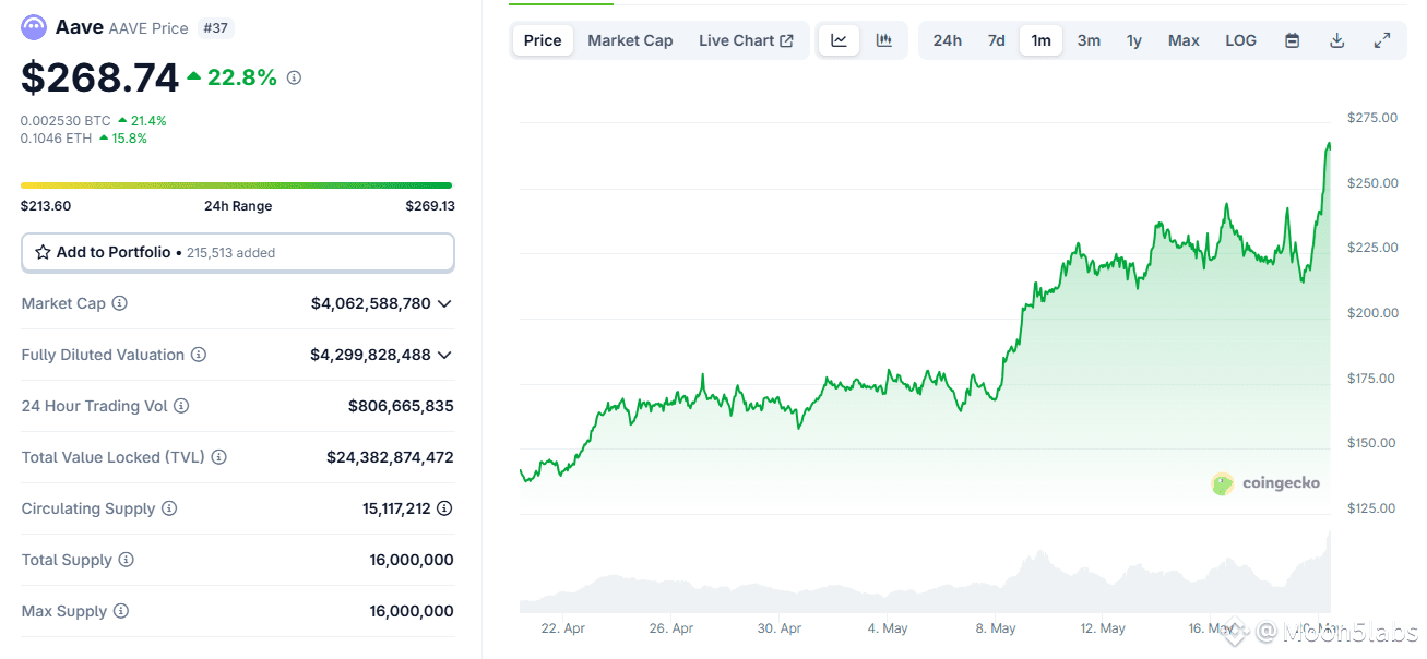 AAVE token has skyrocketed, gaining over 25% in just one day, now trading at a monthly high above $268 — and this could be just the beginning.