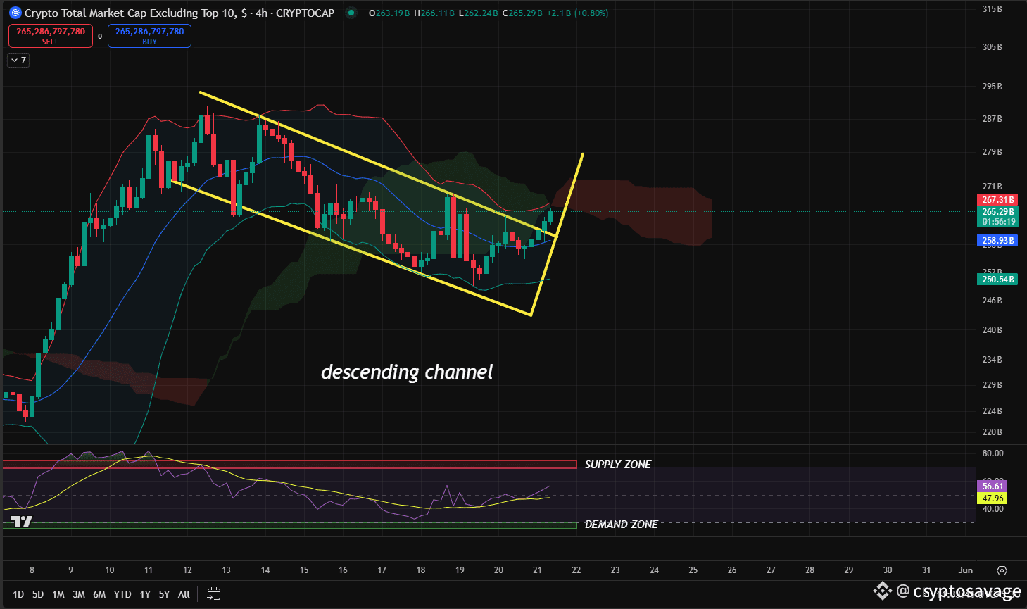 On the 4-hour timeframe, the "Others" chart has formed a descending channel and has recently broken above the upper trendline. This breakout is a bullish signal, especially for mid-cap and low-cap altcoins, suggesting potential upside momentum in that segment of the market.