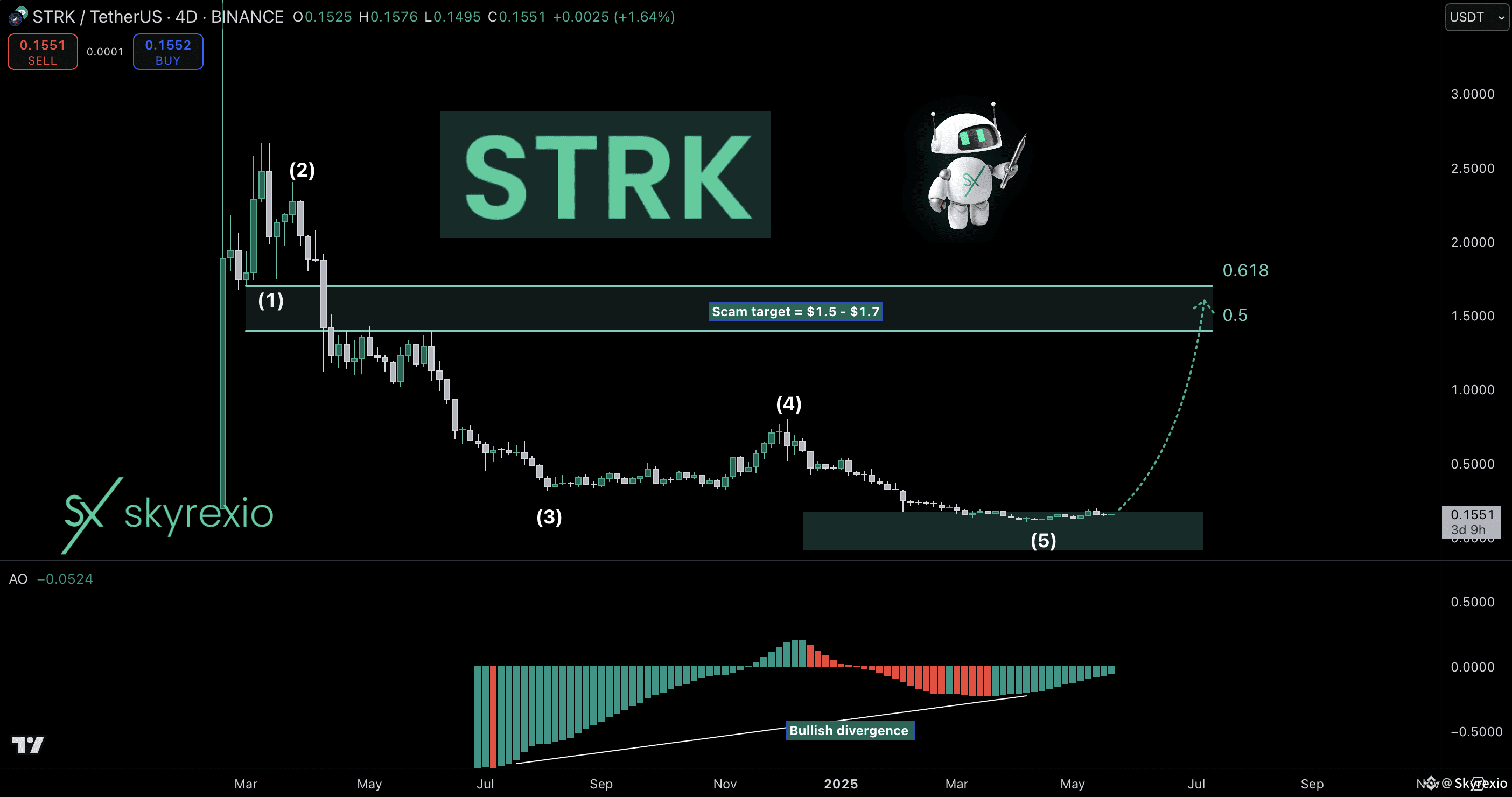 I want to make an update on $STRK because price dropped that much recently and now everyone is telling that this coin is total scam. To be honest I have some doubts that this crypto can bring significant gains in this cycle, but solid bounce can be seen.