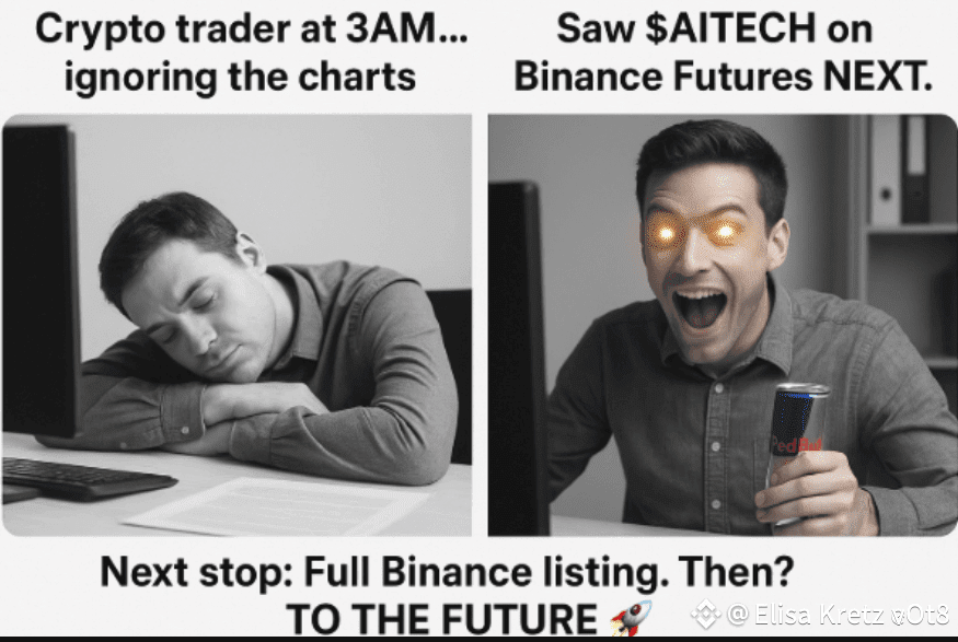 Me: Now wide awake with glowing eyes, slamming Red Bull. Saw $AITECH on Binance Futures NEXT. Sleep? Never heard of her
