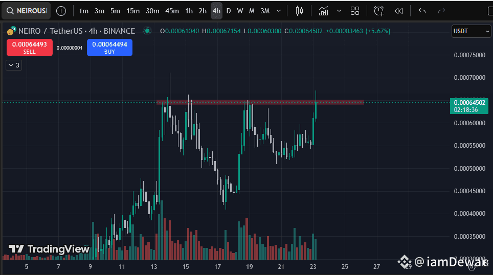 NEIRO is forming higher lows, suggesting bullish accumulation. Today’s breakout attempt could be the start of a range breakout or even a cup-and-handle play.